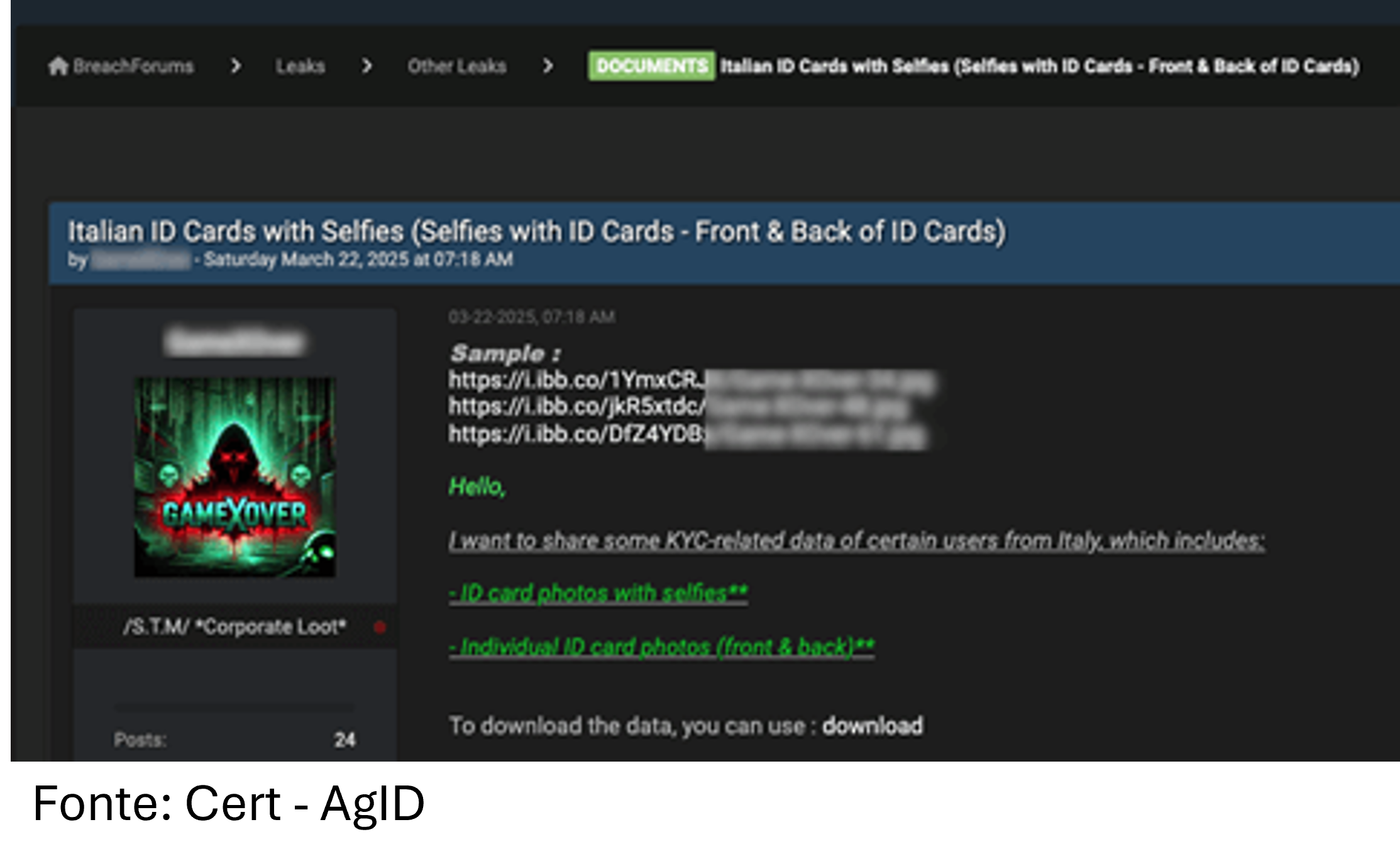 Utilizzando tecniche di social engineering, di phishing, attacchi di malware o tecniche di smishing, la raccolta a strascico di dati personali consente a truffatori e organizzazioni di venire in possesso di decine di migliaia di documenti di identità e poterli utilizzare o vendere al migliore offerente.